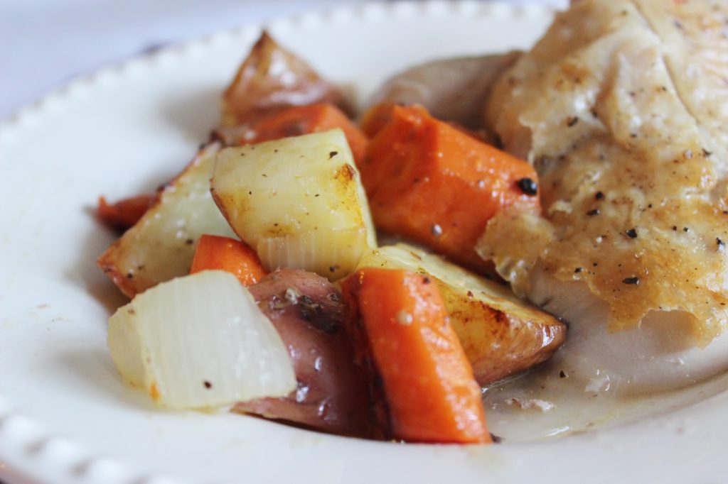 Roast Chicken and Vegetables for Two (recipe from here)