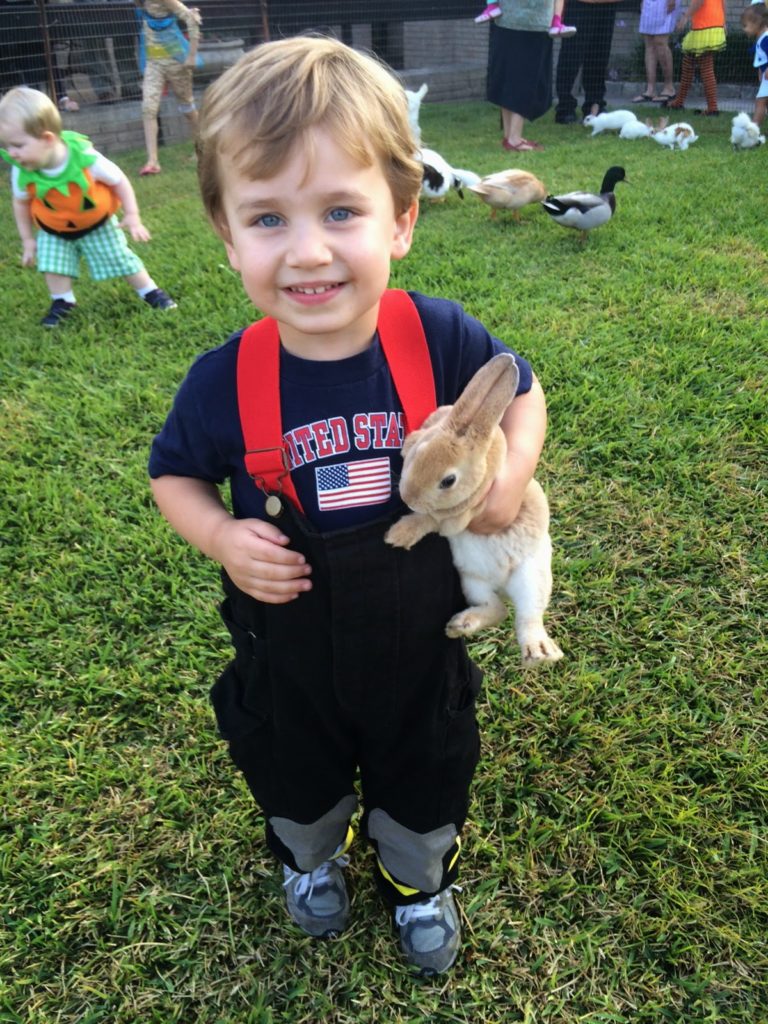 First off, look at this little nugget. Since he has has multiple Halloween events this week, he has gone between being a fireman and an “inja.” Goodness. I could eat him up. This is my favorite Halloween picture so far…the bunny doesn’t look nearly as thrilled as I was.